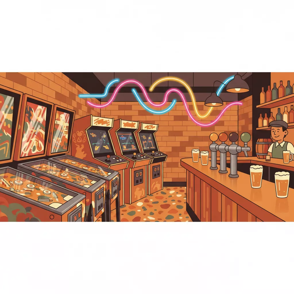 Curated arcade bar with classic and modern games. Next door to JJ's.